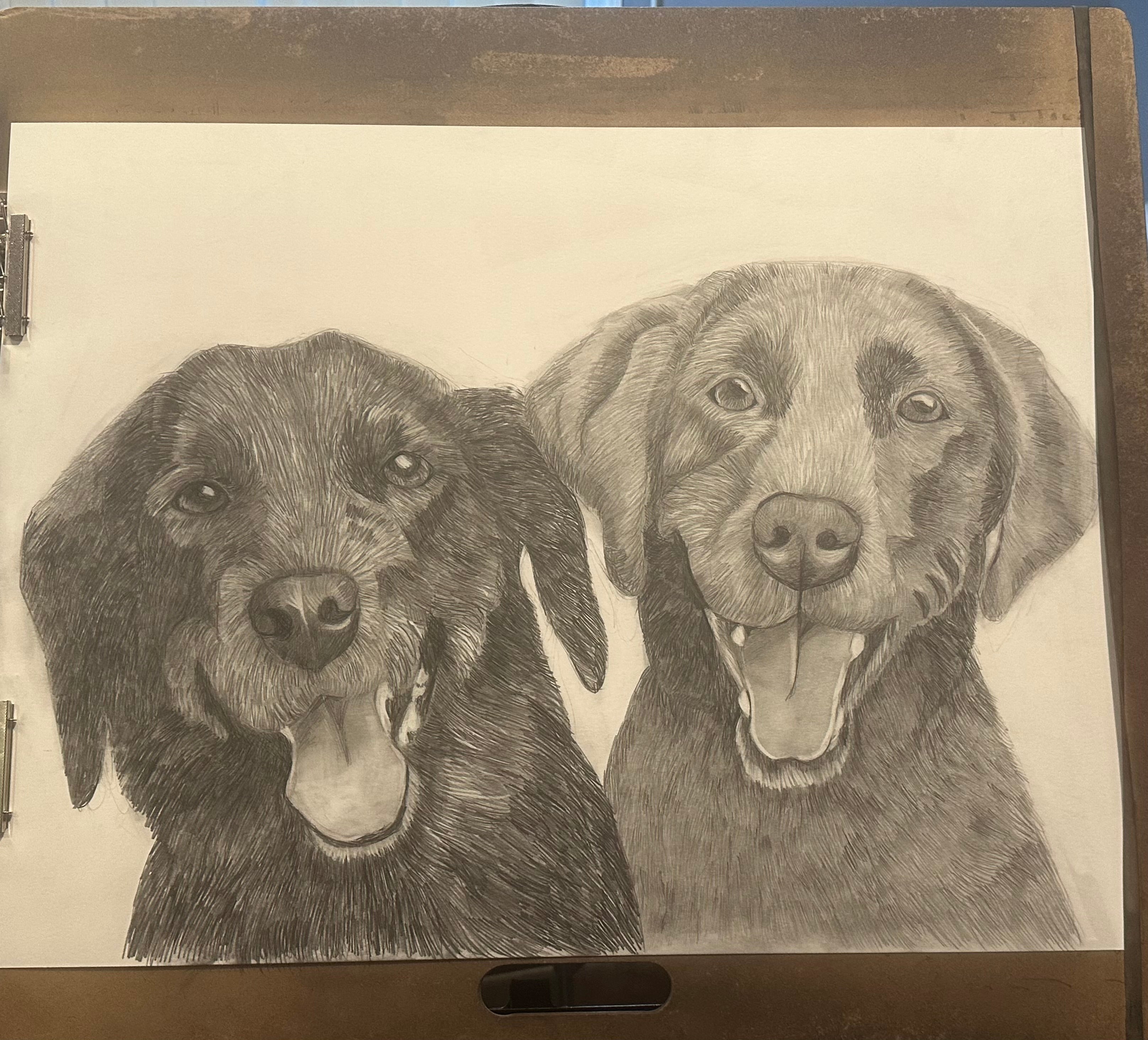 Jen creates stunning, hand-drawn portraits from your photos! Subjects can include pets and humans in the same portrait: even if they weren't in the same photo to start!