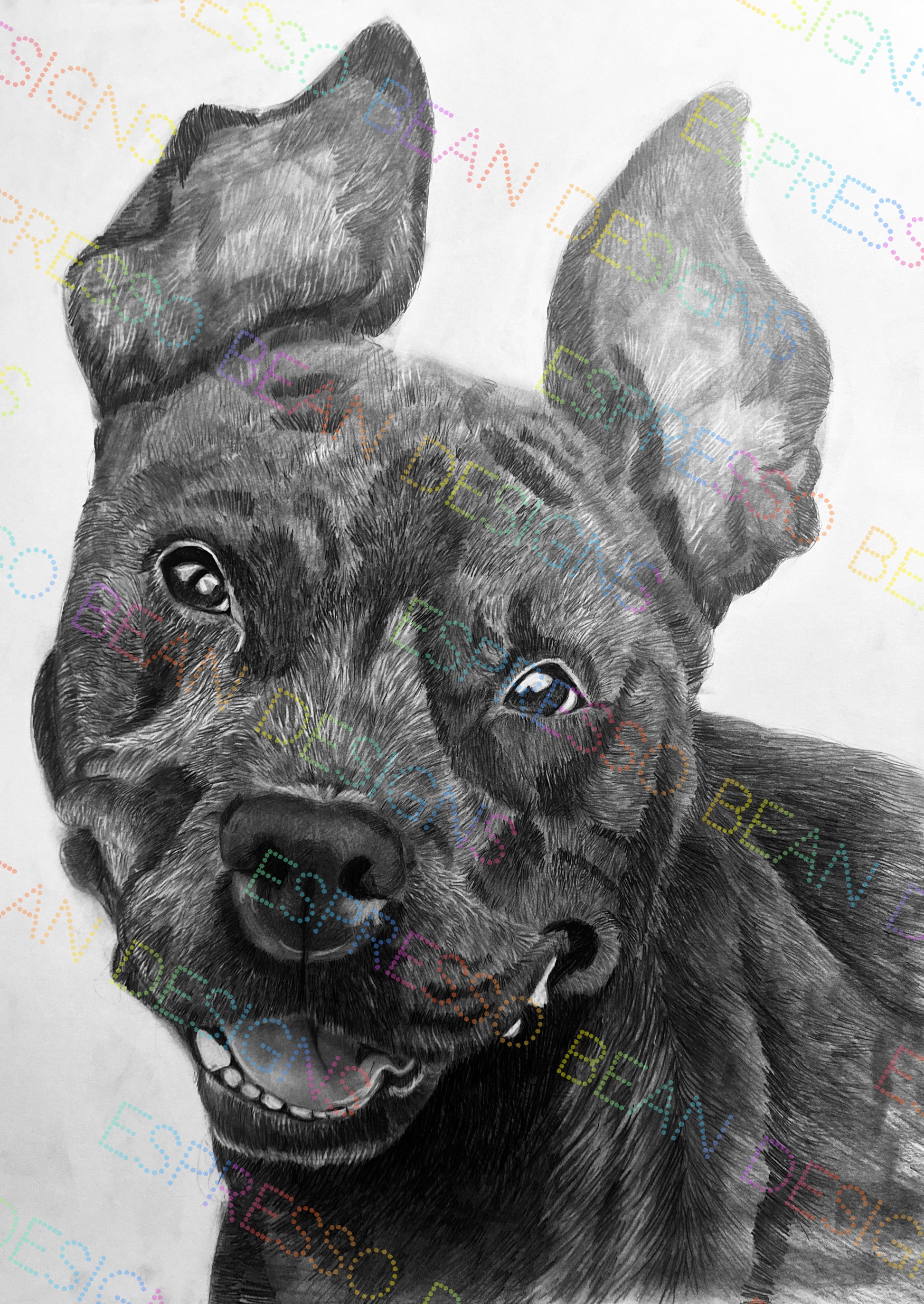 Only the 18" x 24" size is the original hand drawn portrait. It is one of a kind and there will only ever be one available. The smaller sizes and cards feature a print of this beautiful original piece.