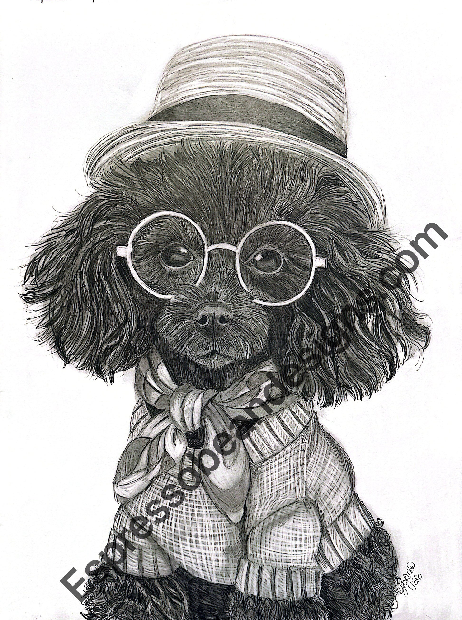 Only the 18" x 24" size is the original hand drawn portrait. It is one of a kind and there will only ever be one available. The smaller sizes and cards feature a print of this beautiful original piece. The watermark will not be present on any prints or original pieces.