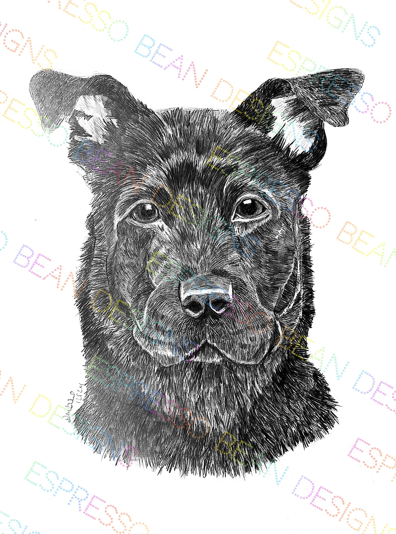 Only the 18" x 24" size is the original hand drawn portrait. It is one of a kind and there will only ever be one available. The smaller sizes and cards feature a print of this beautiful original piece.